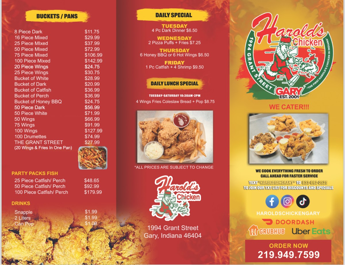 Harold's Chicken Shack - Gary Menu